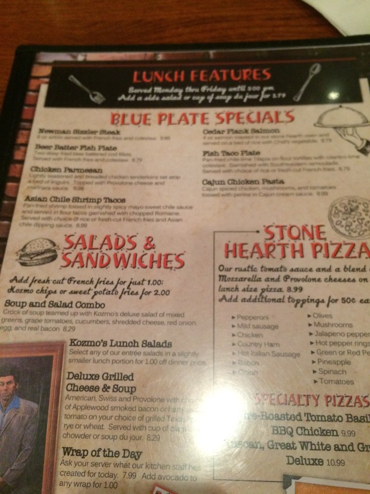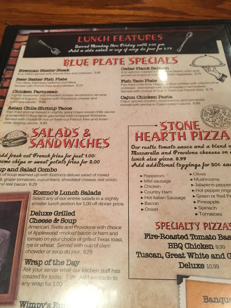 Introducing the menu at Kozmo’s Grille in Massillon, Ohio, you will find a variety of starters including Spinach & Artichoke Dip, Mozzarella Sticks, and Quesadillas. Their homemade Kozmo Chip Baskets come seasoned in different spices or loaded with toppings. Don't miss out on their delicious Homemade Soups like French Onion and Moe's Clam Chowder. Customers rave about the excellent food and service, with dishes like the chicken Parmesan and grilled chicken avocado sandwich standing out. The cozy and local feel of the restaurant adds to the overall dining experience. Enjoy a casual meal with friends or family, as Kozmo’s Grille offers a range of utilities including outdoor seating, free Wi-Fi, and catering services. Whether for lunch, dinner, or dessert, Kozmo’s Grille is a must-visit spot for quality food and great service.